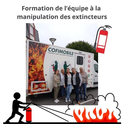Le personnel de la MFR est régulièrement formé à la sécurité : Sauveteurs Secouristes de travail, utilisation du SSI et la semaine dernière manipulation des extincteurs.