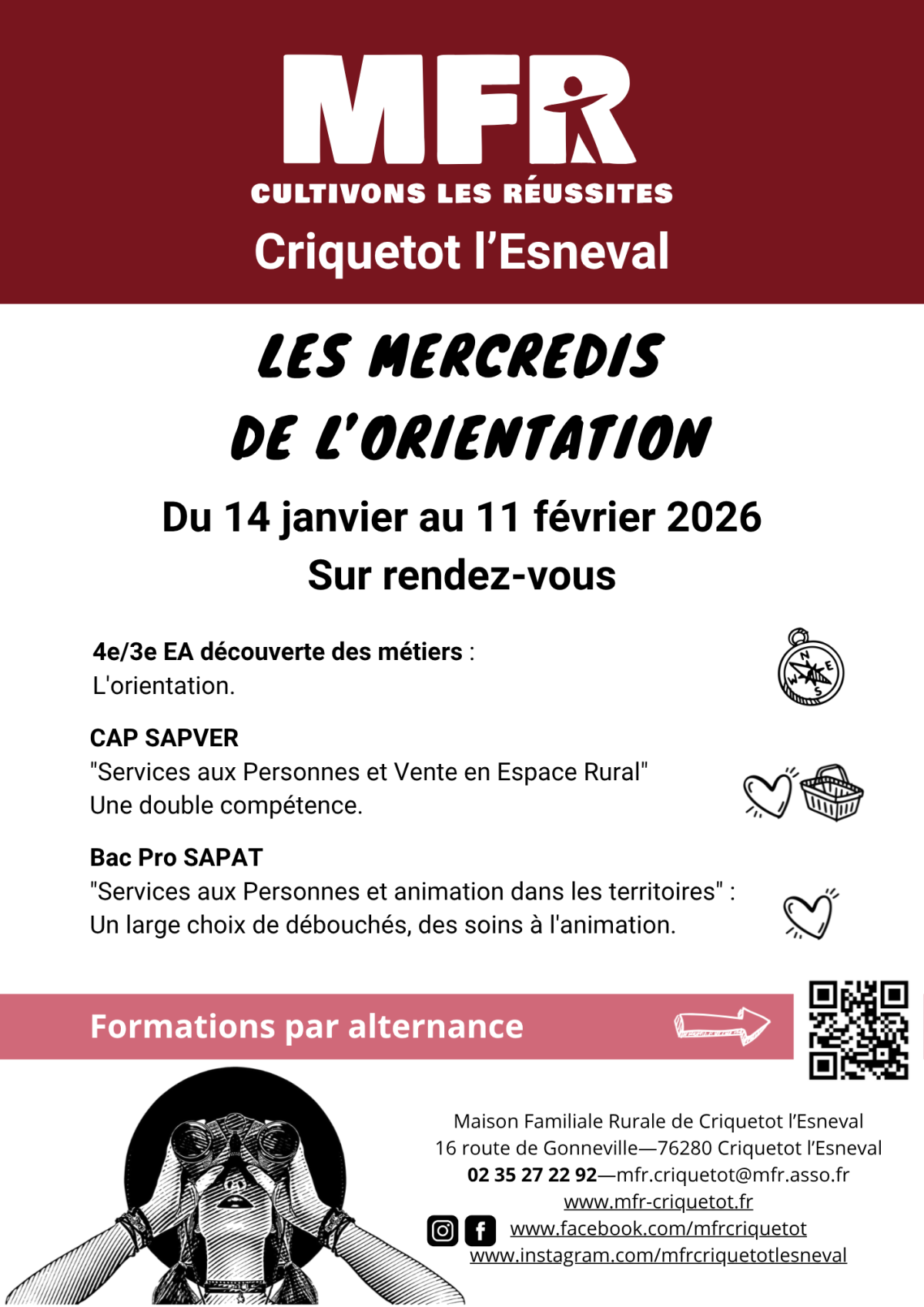 Les mercredis de l'Orientation du 14 Janvier au 11 Février 2026